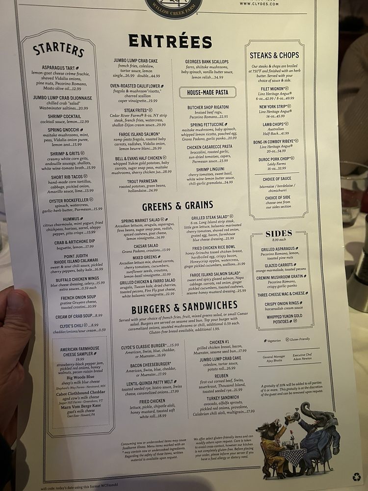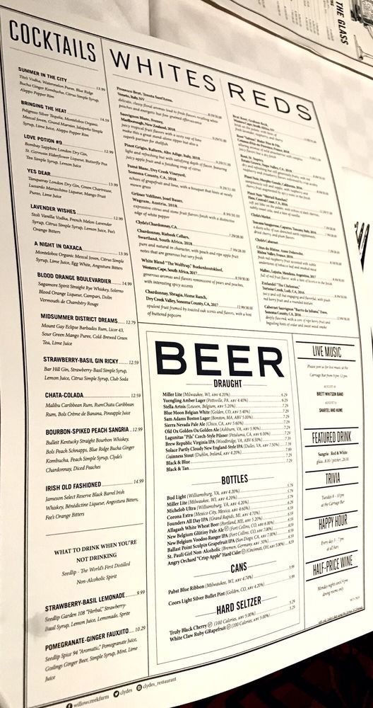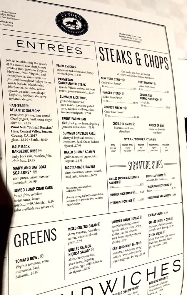 Clyde’s Willow Creek Farm Menu (Update 2025)